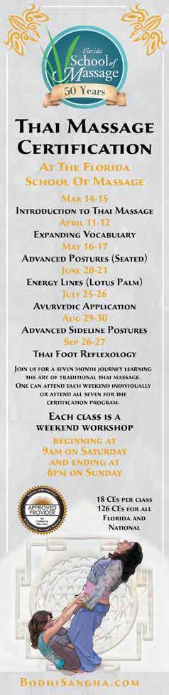 The BodhiSangha School of Thai Massage offers an incred ible Journey of Learning begin ning in May. There are 7 classes. You are welcome to drop in or take all. Free course books for full program registrants with this ad - $100 value.