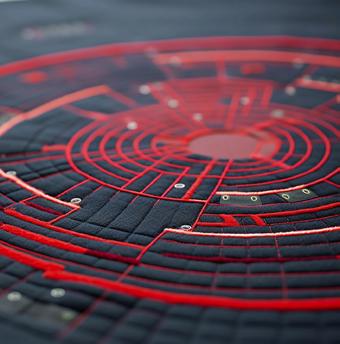 Stickerei strukturiert textile Flächen dekorativ oder funktional. Moderne computergesteuerte Maschinen setzen digitale Designs in Sekunden um, während Handstickerei als Kunstform erhalten bleibt. Sie kann Flächen verstärken, leitfähige Garne integrieren oder dreidimensionale Strukturen erzeugen.