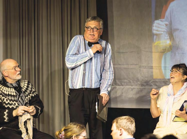 Til gengæld havde revyen så fået de to tidligere skolelærere, Bodil Albrechtsen, Kirsten Knutsen ind i folden sammen med Vibeke Grann og hendes søn Kim og de to døtre, Ida og Winnie, plus revyfænomenet Brian Andersen, som vi også kender fra andre lokale revyer samt som veloplagt speaker ved Give HK’s hjemmekampe i Ikærhallen. Et hurtigt gennemløb på lommeregneren viste, at revyholdet anno 2024 er lidt yngre – og det er jo en positiv udvikling, især med henblik på revyens videre fremfærd de næste år.