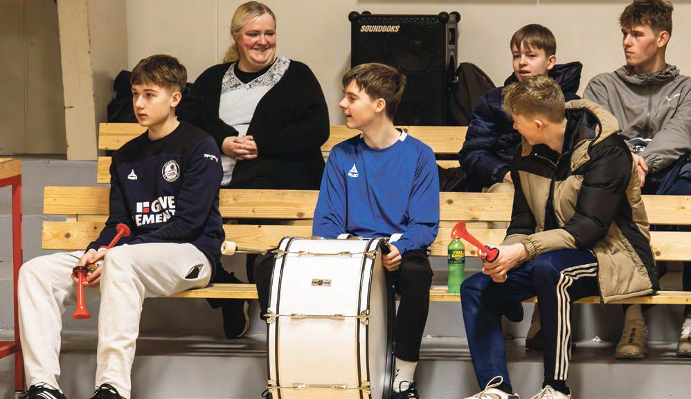 Matti (i blå trøje) er altid klar til at give den 100 procent for klubben og sine klubkammerater. Her giver han den gas med trommerne ved Humlebi Cup. Foto: Jim Hoff