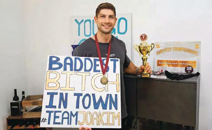 Efter at have udført sine ting under selve konkurrencen, bliver atleterne så linet op og venter mere eller mindre rystende nervøse på dommernes vurderinger. Da de første fem var blevet sorteret fra, stod Joakim tilbage i den kvartet, hvor guld, sølv og bronze skulle fordeles. -Så begynder man da at håbe på noget stort. Og da et par af de andre blev kald ud til bronze og sølv, stod jeg tårnhøj på nerver og ventede bare på at mit navn skulle blive råbt og sammen med DM-titlen. Og så skete det. Det blev sgu’ mig – og så blev jeg helt ekstatisk. Jeg kunne slet ikke være i mig selv og drønede op på podiets øverste plads og gav knuck-