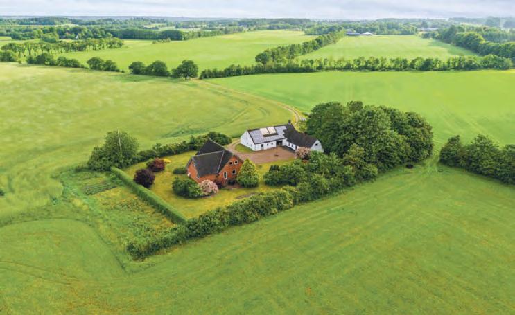 eget ot, velholdt og ind ytningsklar landejendom beliggende i udkanten af hyregod by. Ejendommen byder på et rummeligt stuehus, der løbende er moderniseret. Køkken med viktualierum, alrum med udgang til den skønne have og en stor stue. En bolig, der kan rumme hele familien. Udhusene er velindrettede og meget velholdte. Her er lade, værksted, gildesal og en hestestald. Den parlignede have og de naturskønne omgivelser omfatter marker, folde, søer og skov . Hvilket skaber en idyllisk ramme omkring ejendommen.