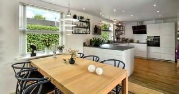 På Poppelvej 4 skal I se en villa, hvor alt på nær mursten og spær er renoveret i perioden 2022-2024. Rundturen starter i køkkenalrummet og stuen, der ligger i naturlig forlængelse af hinanden. Alt inventar i huset er fra Invita, og det gælder således også for de elegante køkkenelementer. Over bordpladen er der fliser i sildebensmønster, og i Troldtekt-loftet sørger spots for den perfekte arbejdsbelysning. Bemærk også det skjulte viktualierum. Fra både alrummet og den hyggelige stue er der direkte tilgang til haven. De fire værelser og to badeværelser fordeler sig i to respektive afsnit, så forældrene kan få en privat zone i komfortabel afstand til børnene. Samtlige værelser er rummelige og indbydende, og på de to badeværelser med brus går Invita-inventaret igen. Børnefamilien vil også synes om det praktiske bryggers med egen indgang. Grunden på 984 kvadratmeter er etableret på ny inklusiv en enorm terrasse på den ene side og en indkørsel på modsatte. Terrassemiljøet vender stik mod det solrige syd, og det samme gør plænen med plads til børnenes leg. Der er også tænkt over den smukke beplantning. I forlængelse af værkstedet er der redskabsrum.