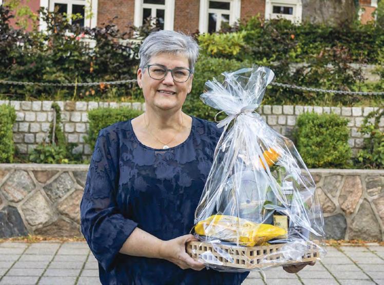 formand, Tova Andersen, var på plads, da hun midt formiddag under festlighederne på markedspladsen ved Thyregodcentret blev kaldt op af Thyregod-Vester Borgerforenings formand, Jens Erik Svane, der havde både flotte ord og en fin gave, han ville overrække til Tove.