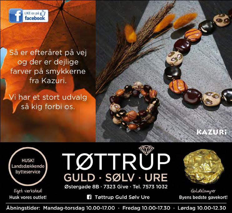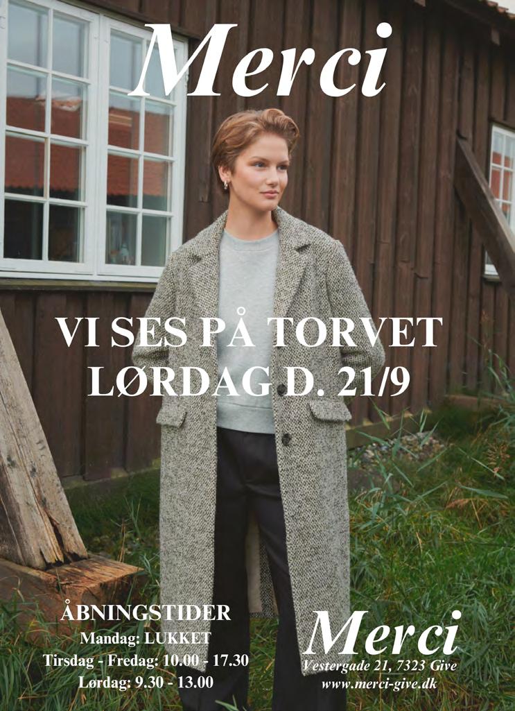 Din Tøjmand / Sportigan / Merci / Boutique Mary Klunz / Danbolig / Give Tøjcenter / Kælder-vin Blomsterværkstedet Birkebæk / Imerco Museum Give / Klinik La Vie / Kop & Kande Vind gavekort for i alt kr. 10.000,-