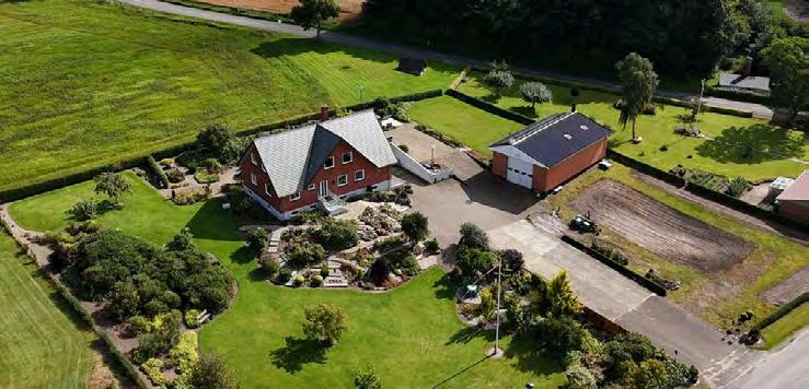 Ejendommen tilbyder en unik kombination af rummelighed, naturskøn beliggenhed og mange muligheder for både privatliv, pladskrævende hobby eller mindre erhverv. Grunden er omkranset af landlige omgivelser, hvilket giver en vidunderlig udsigt over det åbne landskab. Stort stuehus fordelt på ere plan. Kælderen rummer to store garager, et lille værksted, mm. En værksteds lagerhal med stålpladetag og solceller. Den omkransende og omhyggelige anlagte have, skaber små oaser i det grønne landskab rundt på ejendommen.