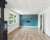 Indrettet med hele værelser, 2 badeværelser, godt køkken, en stor stue og udestue. ilhørende en m garage med god plads til værksted. Nem og grøn have med plads til leg.
