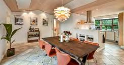 Lige udenfor landsbyen Farre, tæt på Give, ligger denne pæne ejendom med stuehus fra 2 . Boligen er ot og velholdt, med et gennemført materialevalg og indretning hele vejen igennem. Børnenes værelsesafdeling, der har tre værelser, ligger separat med eget badeværelse i modsatte ende fra forældreafsnittet, hvor der også er tilhørende badeværelse. midten og entralt nder du det store køkken/alrum med åben adgang til den lyse stue. Udbygningen er på 2 m bestående af dobbelt garage, gildesdal og hal/værksted. Stor grund med god plads.
