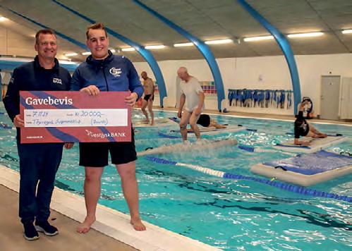 THYREGOD: Svømmeklubben i Thyregod har modtaget en dejlig check på 20.000 kroner fra Vestjysk Bank i Give. Pengene er brugt på nye aqua boards til vores helt nye satsning, et hold vi kalder = Float Fit.