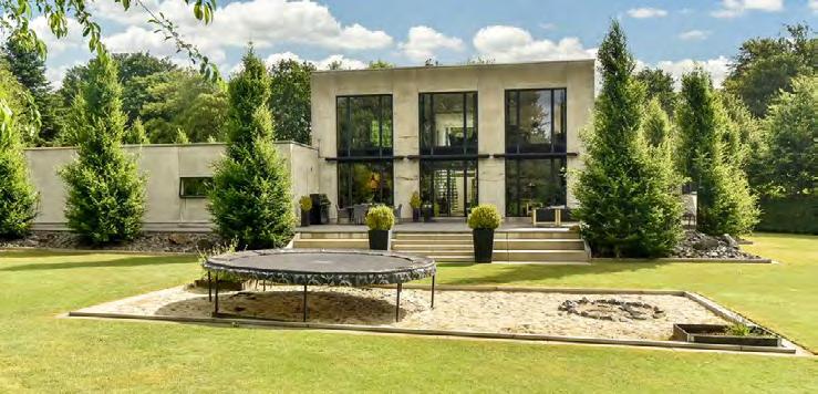Tilbagetrukket og ugenert sidst på Skovvej i Give. En unik arkitekttegnet funkisvilla, med et gennemført, ot og eksklusivt udtryk. ed et moderne og gennemført udtryk, hvor omgivelserne, lys, luft og akustik er vægtet højt i indretningen. Villaen har også et yderst ot og gennemført uderum. Boligen er fordelt på to plan og med dobbelt garage integreret i bygningen. Indrettet med stort køkken alrum og stue, hvor de store vinduespartier kommer til deres ret. er er hele værelser og 2 store badeværelser, gæstetoilet og endne et stort opholdsrum.
