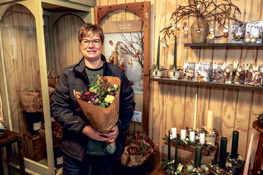 Hun laver alt fra friske blomsterbuketter over dekorationer, tørrede blomster og til brude- og begravelsesbuketter – fuldstændig som i en klassisk blomsterbutik.