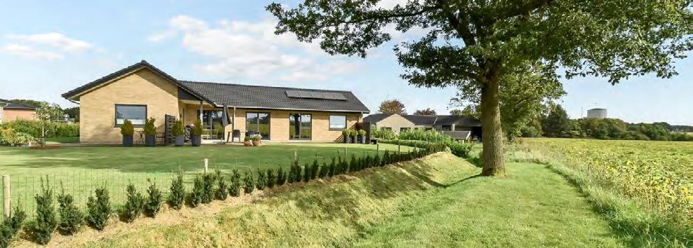 Velkommen til dette pragtfulde Givehus. Her får I en villa, som kombinerer moderne design med funktionalitet og det ses tydeligt, at der er lagt mange gode tanker i byggeprocessen. I overtager her et nyt hus, hvor I kan ytte direkte ind i et hjem, der emmer af kvalitet og hygge. Her får I et åbent køkken alrum stueområde, der yder sammen på harmonisk vis. Herfra er der udgang til terrassen hvorfra den skønne udsigt over haven og de omkringliggende marker kan nydes. I den ene ende af stuen nder I to værelser, ideelle som børneværelser eller kontorplads. esuden rummer villaen endnu et værelse og badeværelse ved siden af walk-in garderobe og soveværelse. Huset tilbyder endnu et badeværelse samt bryggersafdeling hvorfra der er adgang til værkstedet, herfra igen udgang til carporten. Ejendommen ligger i et nyt veletableret villakvarter tæt på Give centrum, her har I nem adgang, også til fods eller på cykel, til byens mange faciliteter.