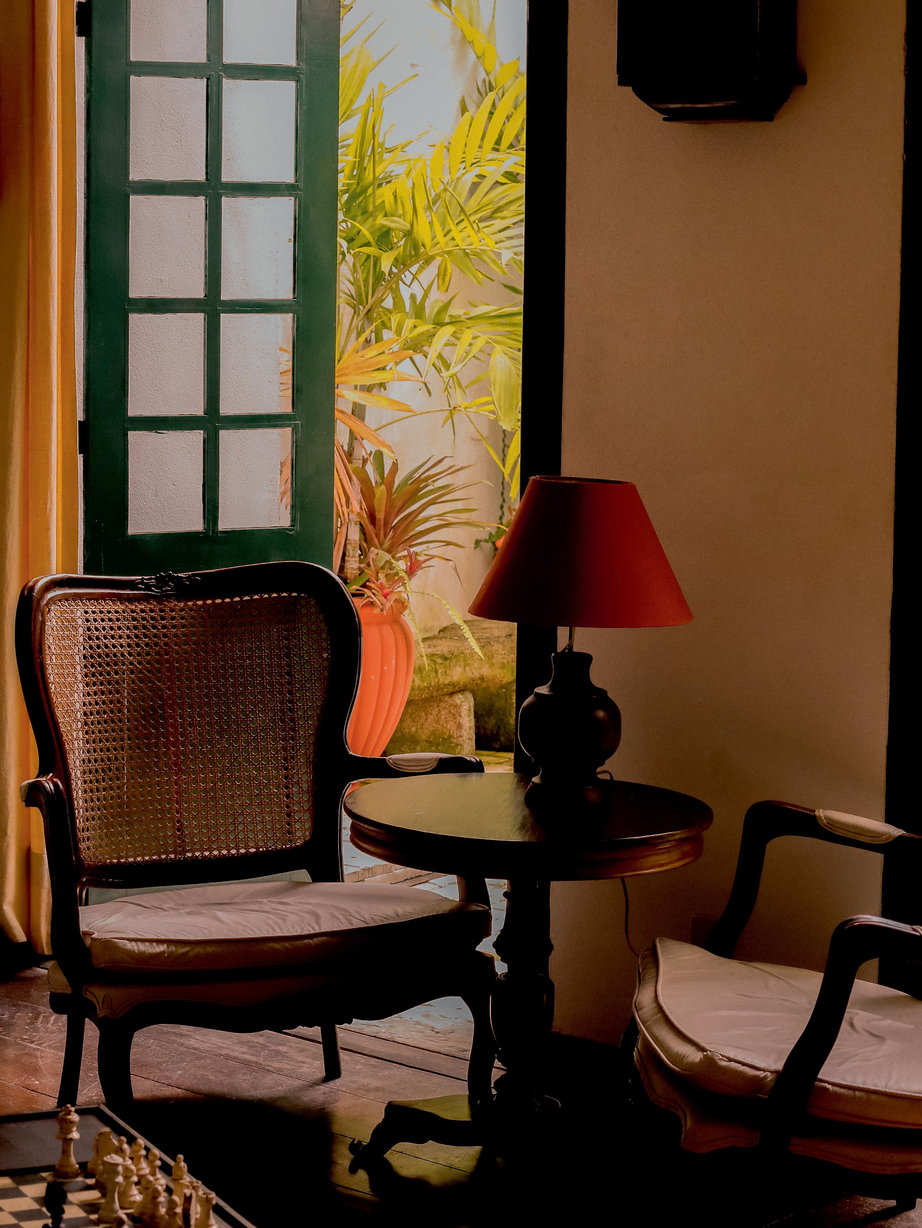 Deep in Salvador’s historic centre, down winding cobblestone streets and past rows of colourful colonial buildings, you will find our very own hotel hideaway: Villa Bahia. Encompassing two adjoining and tastefully restored 18 th-century mansions, this is the perfect base for exploring Pelourinho. The hotel’s rooms look out over the ornate Sao Francisco Church – one of Brazil’s finest exa mples of Baroque architecture – and the decor throughout is handsome and artisanal; antique wooden furniture sourced from a local salvage workshop, custom taps crafted in a Sao Paulo favela , and all hand-picked by the hotel’s director, Bruno Pascal Gumard. The panoramic terrace on the third floor, reached by a beautiful wooden elevator decorated with intricate birds, is a delightful oasis with sweeping views over the neighbourhood’s rooftops and church steeples. But the best spot is in the basement: historic purification baths adorned with azulejo tiles. Discovered under the rubble during the building’s renovation, the baths are believed to have been built by a family of Marranos , Jews who were forced to convert to Catholicism by the Portuguese authorities but secretly retained their faith.