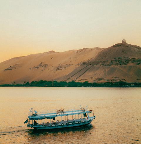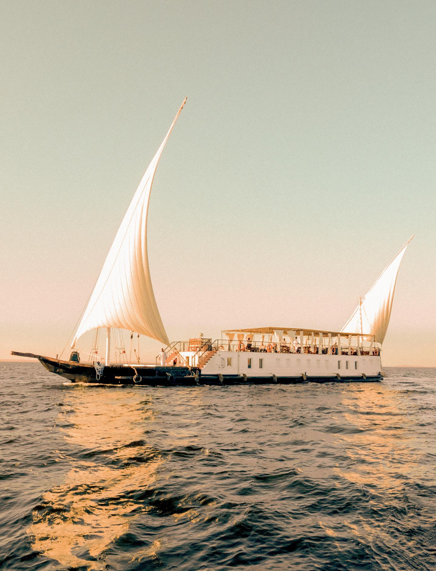 On the final day of the voyage, I took up my spot on the linen sofa and savoured the final few hours of sailing. With sunset approaching, the banks of the Nile looked like they’d been drizzled with honey and the spiky palm trees formed inky silhouettes against the orange-streaked sky. It felt like moving through a painting and I was immediately struck with an intense longing to return to Egypt one day, to this very spot, to experience the magic of the Nile once again. •