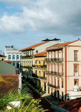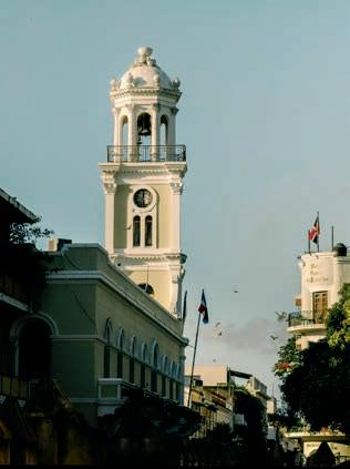 En 1492, les explorateurs du VieuxContinent font de Saint-Domingue la porte d’entrée du Nouveau Monde, lorsd’un premier voyage dirigé par Christophe Colomb. La petite ville du sud devient rapidement un carrefour commercial important. Cathédrales, hôpitaux et universités sont érigés à l’intérieur de ses remparts comme symboles architecturaux d’une nouvelle ère, celle de la domination espagnole. Paradoxalement, les traces de la colonisation restent ici limitées, en comparaison avec d’autres pays d’Amérique centrale où l’or était plus abondant. Si, aujourd’hui, la ville a che fièrement les di érents témoignages de son histoire, elle n’hésite pas à se tourner vers un futur prometteur. Entre les maisons colorées de la Ciudad Colonial, certains édifices sont dédiés aux courants artistiques contemporains, comme le Palais des Beaux-Arts. Plus globalement, la recherche de mouvement semble être un trait commun à tous les Dominicains. Le merengue et la bachata -musiques et danses