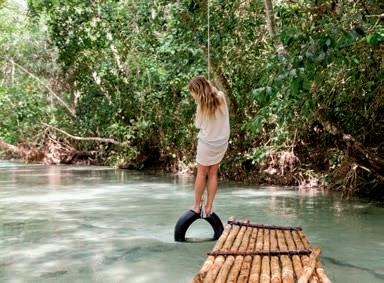 En descendant le Río Grande. Les radeaux de bambou qui sillonnaient autrefois le fleuve permettaient d’acheminer les récoltes agricoles jusqu’aux quais de Port Antonio. Aujourd’hui, ils font le bonheur des petits et grands voyageurs aventuriers.