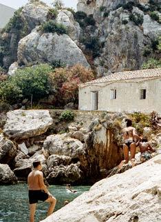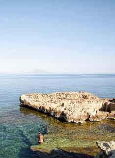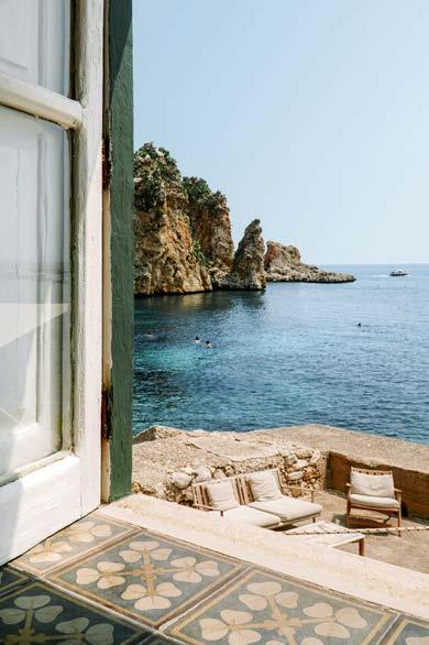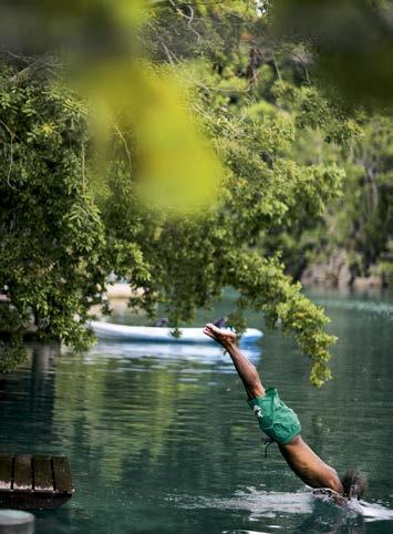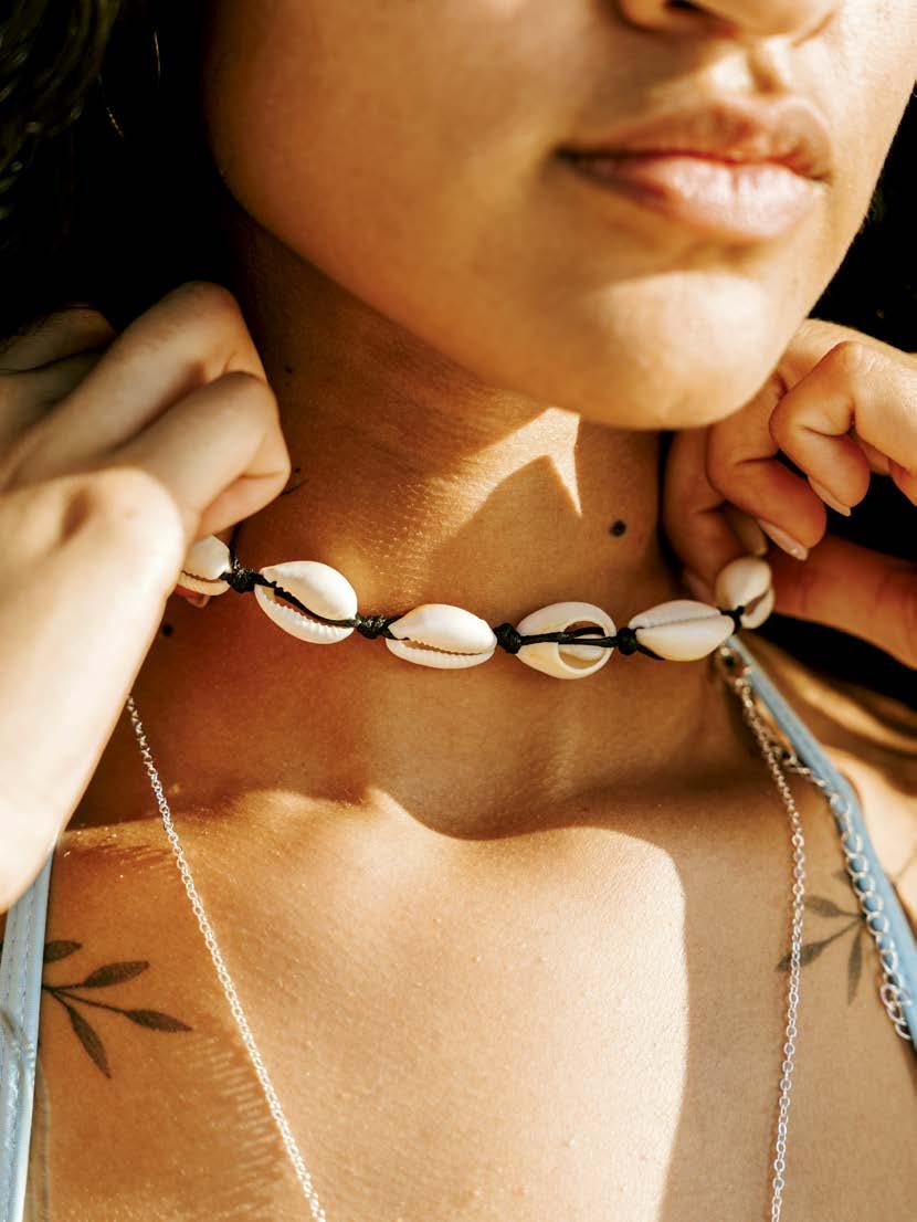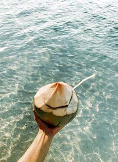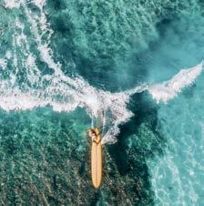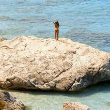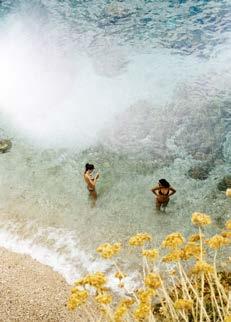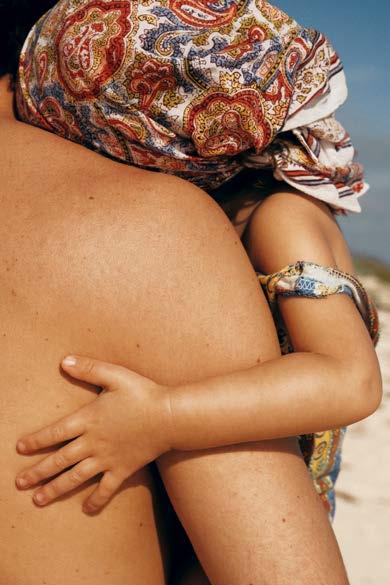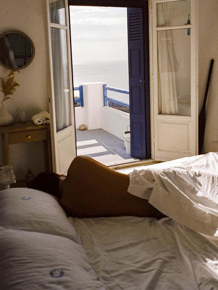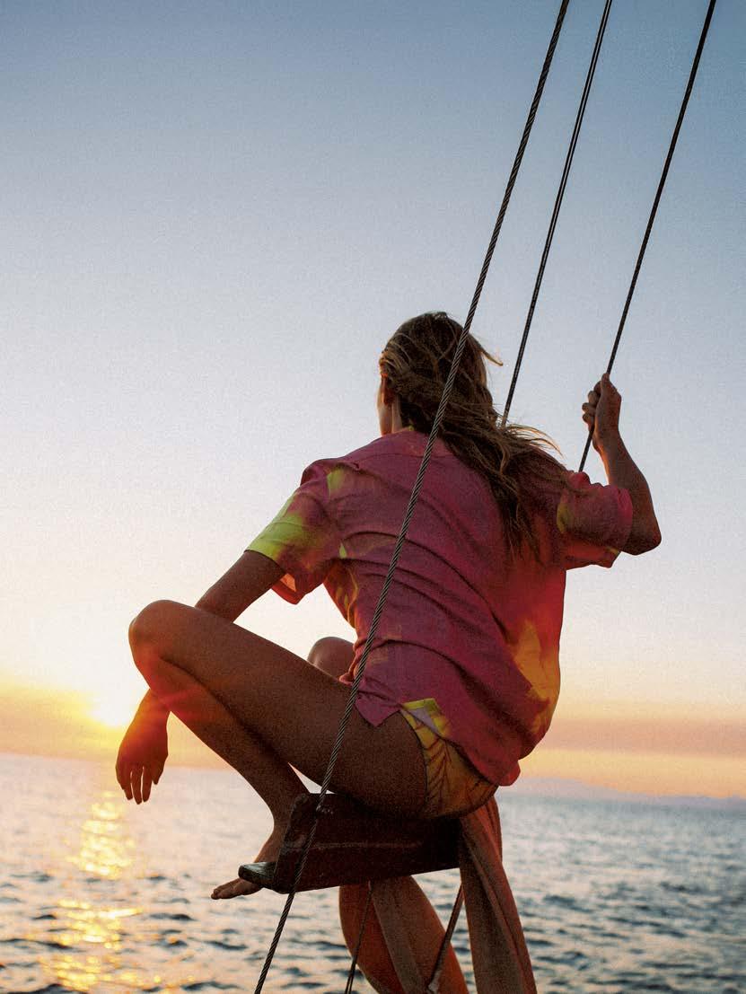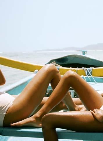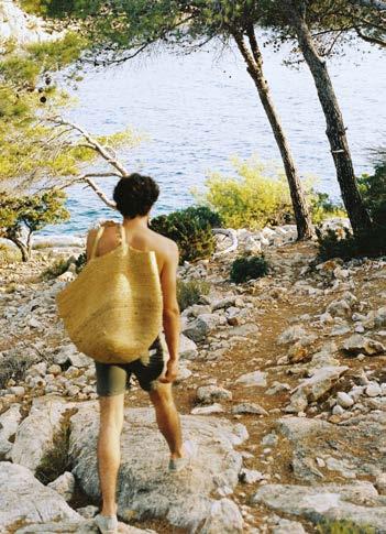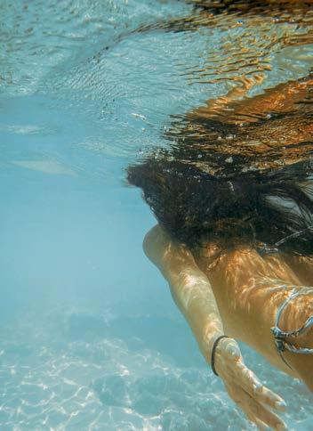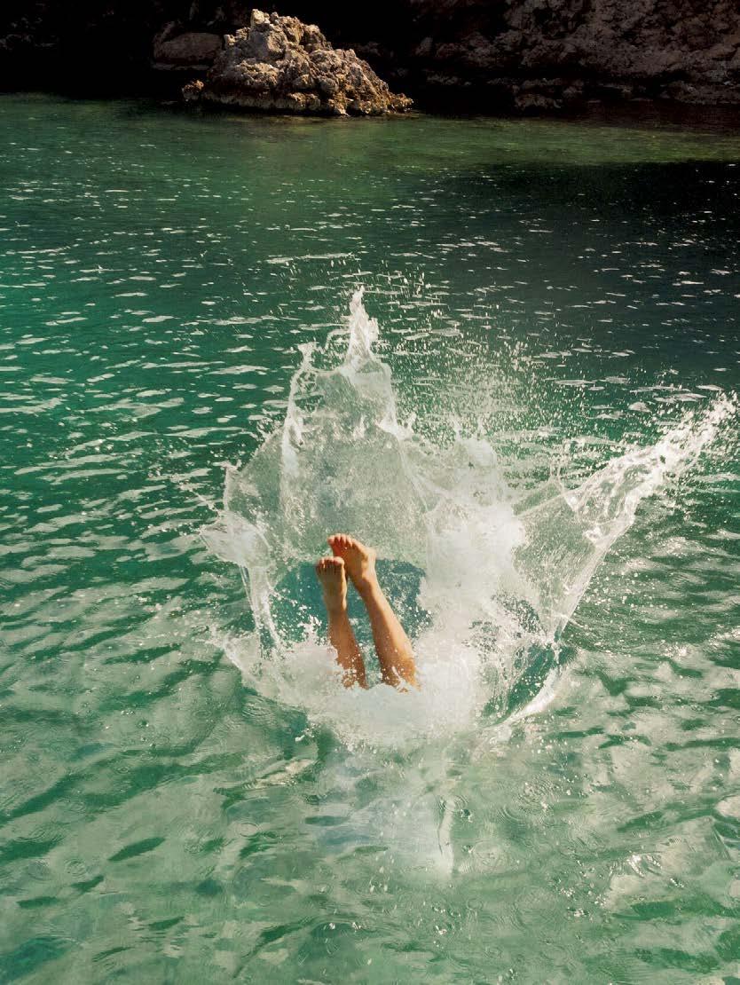 main en visière, avant de retomber dans un état de semiconscience, méditatif ou même pas, le soleil chatouillant la peau. Les gouttes qu’il éparpille un peu partout à son retour fondent rapidement sous ce soleil implacable. Les soucis aussi. Même les pensées ( to do list à rallonge et besognes triviales) n’y résistent pas. Béats, on rechigne à fermer cette parenthèse. Heureusement, une forme de magie opère : l’esprit s’attarde sur l’île longtemps après que le corps s’en soit échappé. •