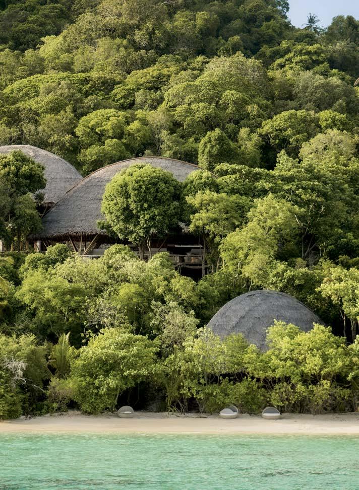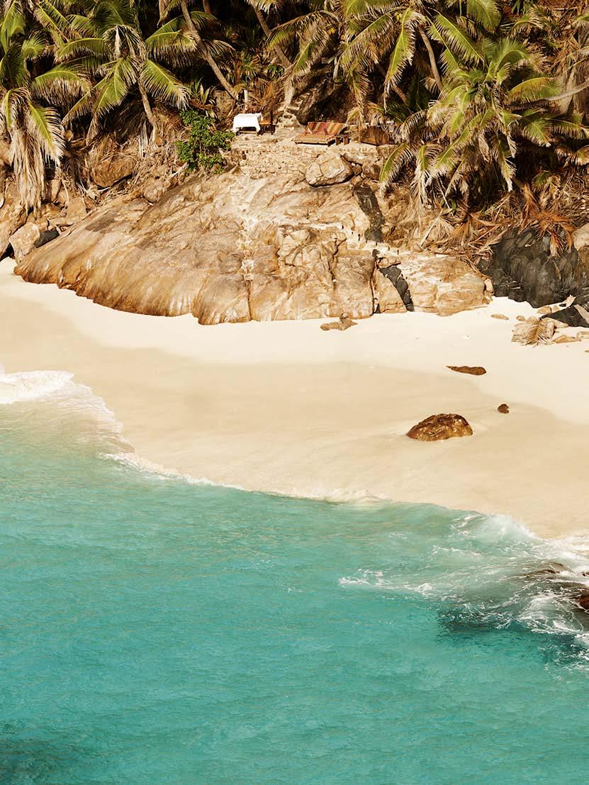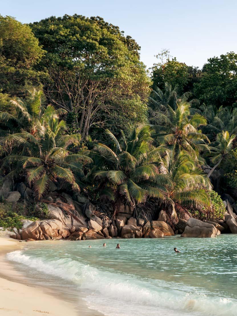 Trois îles, trois adresses folles. À Silhouette, de charmantes maisons créoles dissimulées dans une nature luxuriante. Côté Praslin, un restaurant pointu et quelques volumes aux toits de palme ouverts aux alizés. Enfin, sur l’île-hôtel de Félicité : des villas avec piscine (et butler privé) associées à un spa intégré à de majestueux rochers.