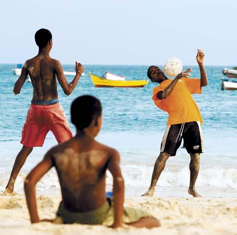 La baie de Mindelo est pour les voiliers la derniĂšre escale avant la traversĂ©e vers le BrĂ©sil et, sur ses plages, des grappes dâenfants disputent des parties de football impromptues, donnant aux rivages des airs de Copacabana. Ă une heure de mer en ferry, Santo AntĂŁo, Ăźle couronnĂ©e de nuages, striĂ©e de cultures en terrasse, est verte et sauvage. Le long de la âroute de la Cordeâ, vertigineuse, entre crĂȘtes escarpĂ©es et falaises abruptes sur lâocĂ©an, les maisons se confondent avec