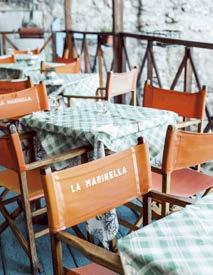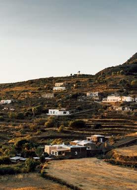 turquoise d’une pureté troublante. Montagneuse et sauvage, Marettimo est entièrement dépourvue de voitures. Levanzo, la plus petite, abrite des gravures et peintures rupestres vieilles de quinze milleans. Favignana a converti sa dernière tonnara en musée retraçant l’histoire de la pêche au thon. Discrètes et sereines, les trois îles vivent au rythme des flots, des saisons et de la pêche du jour –à la rigueur assaisonnée de câpres, dont elles sont le principal fournisseur d’Italie avec leur voisine, Pantelleria. L’île la plus occidentale de la Sicile, plus proche des côtes tunisiennes que de l’Italie, est un secret bien gardé. Une terre volcanique au climat délicieux, à la cuisine parfumée d’Orient et aux paysages contrastés. Sa verte garrigue se coi e de bergeries dammusi, restaurées pour certaines en retraites confidentielles. Une route pittoresque en fait le tour en quarantekilomètres, surplombant les côtes déchiquetées.