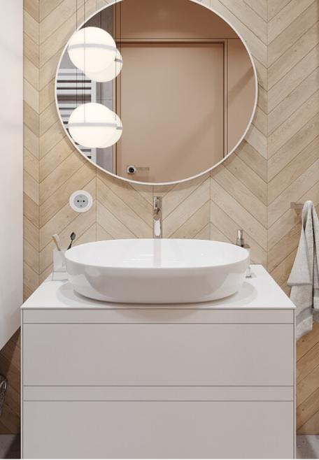 Wprojekciezastosowano: wannęprzyściennąBellezzaKarina160x73,kabinęprysznicowąEvolveSID-Mwalk-infix,umywalkęnablatową Barcelo-L65 140,30 116,90zł/m2
