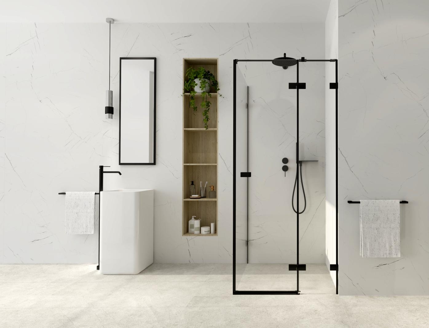 wymiar:1000x2000mm szkło:8mmhartowanezpowłokąAquaPerle profil:czarnymatipoprzeczkastabilizująca wkomplecie