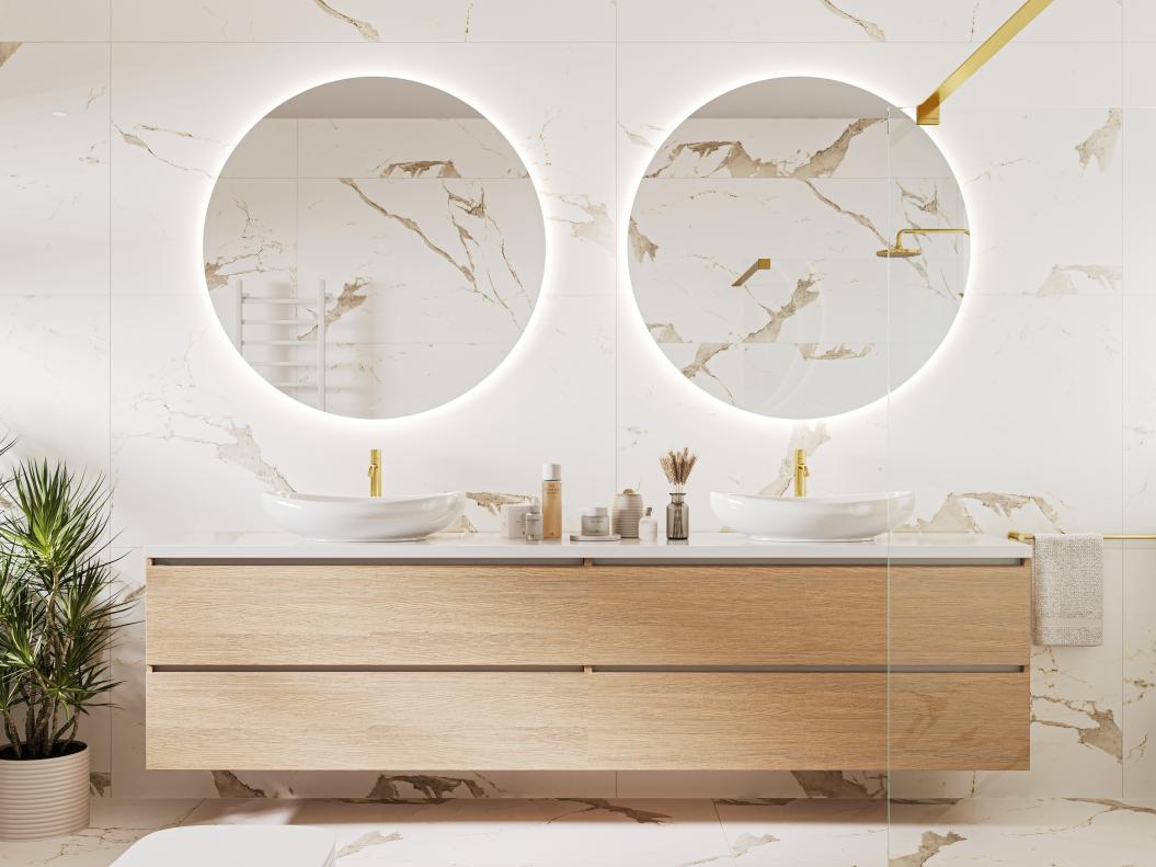 BellezzaMarmowellGoldtokolekcjagresówrektyfikowanychimitującychmarmur.Wzórjestutrzymany wtonacjiciepłegobeżuzwyraźnymużyleniemwkolorzejasnegobrązu,bardziej intensywnegow wykończeniupoler,stonowanegowwykończeniumatowym.Kolekcjasprawdzisięzarównow zestawieniachzciemnymiakcentami,czarnąarmaturąiceramiką,jakiwaranżacjachwstyluorganicznym, zpłytkamidrewnopodobnymilubimitującymikamień;będziesięrównieżpięknieprezentowaćw połączeniachzmodnymipłytkamimonochromatycznymiwmocnychodcieniachzieleniczygranatu. l