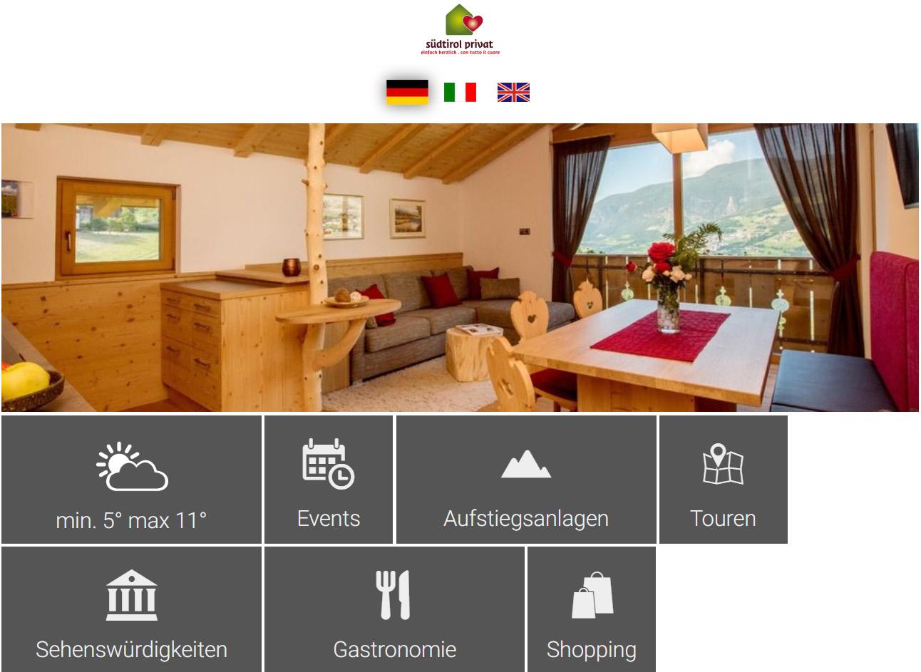 • Präsenz auf der Website unserer Marketinggruppe www.suedtirolprivat. com (sofern in TIC-Web eingetragen),
