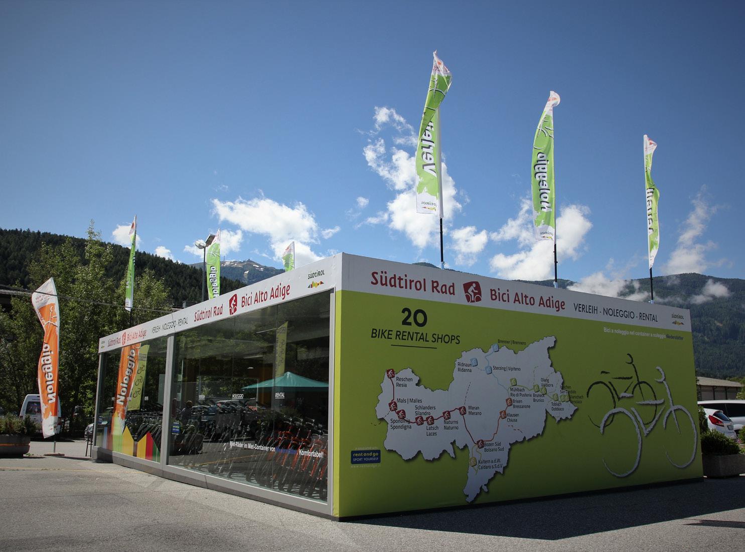 Südtirol Rad wendet sich an all jene, die entweder kein eigenes Rad haben oder das Fahrrad nicht mit in den Urlaub nehmen möchten oder können. Die 20 Verleih-Stationen befinden sich entlang der Südtiroler Radwege und bieten insgesamt 5.000 Bikes, darunter Trekking-Räder, Mountainbikes, Rennräder, Bikes für Kinder und E-Bikes. Anhänger für Kinder, Hunde oder Gepäck, Fahrradhelme, Seitentaschen, Kindersitze und vieles mehr können ebenfalls ausgeliehen werden.