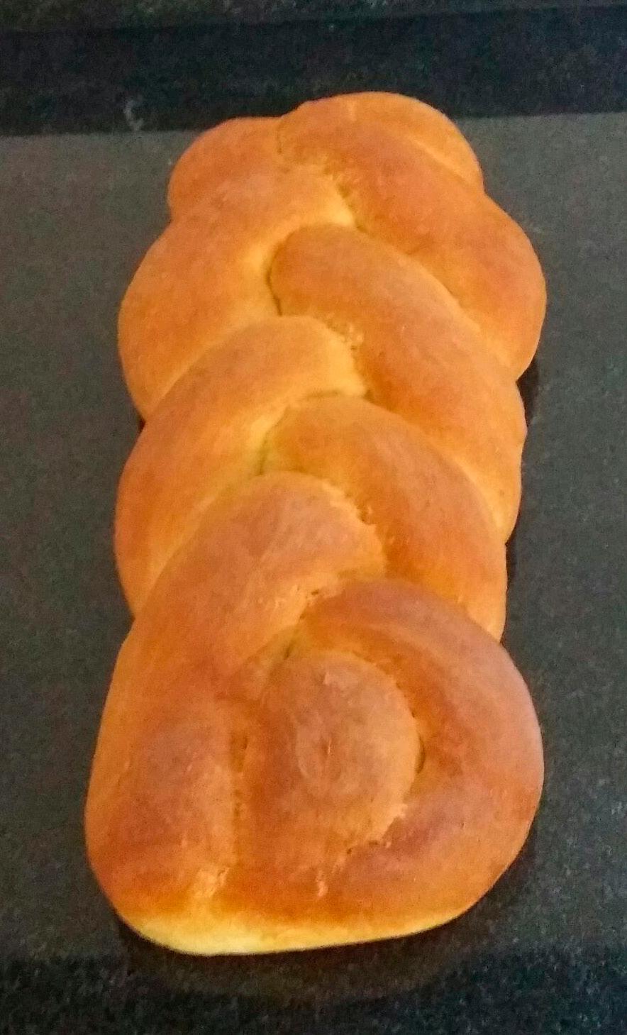 Danach den Teig in 3 gleiche Teile schneiden und Stränge daraus rollen. Die Teigstränge zu einem Zopf flechten, den Zopf nochmals an einem warmen Ort zugedeckt gehen lassen ( ca. 20 min).