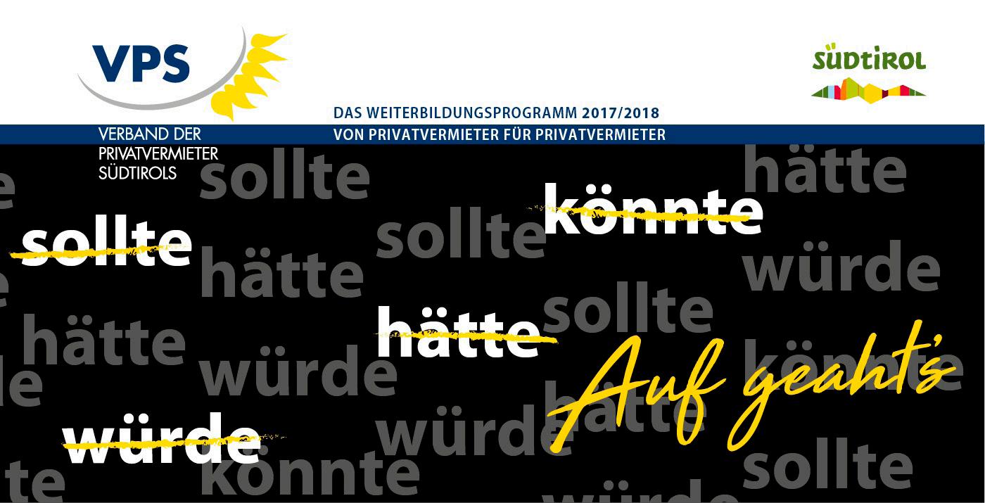 Mit Stolz präsentieren wir Ihnen auf Seite 8 und 9 das neue VPS-Kursprogramm 2017/18. Aktuelle Themen wurden wiederum in lehrreiche Kurse verpackt und warten darauf von Ihnen, liebe Mitglieder, entdeckt zu werden. Gemäß dem heurigen Motto „Auf geaht‘s!“ laden wir Sie ein, an den Kursen teilzunehmen, um somit die eigenen Kompetenzen zu stärken und erfolgreich Neues dazu zu lernen.