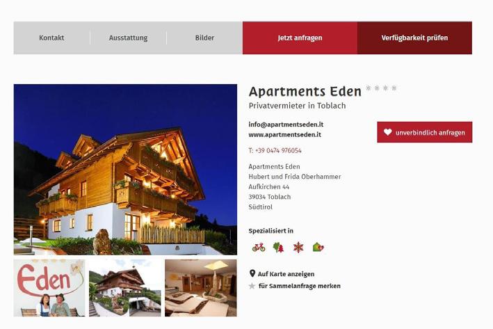 • Möglichkeit, die eigene Domain zu aktivieren (Kostenpunkt für Domain EXTRA), ansonsten lautet die Website: www.suedtirolprivat.com/mustermann-ort