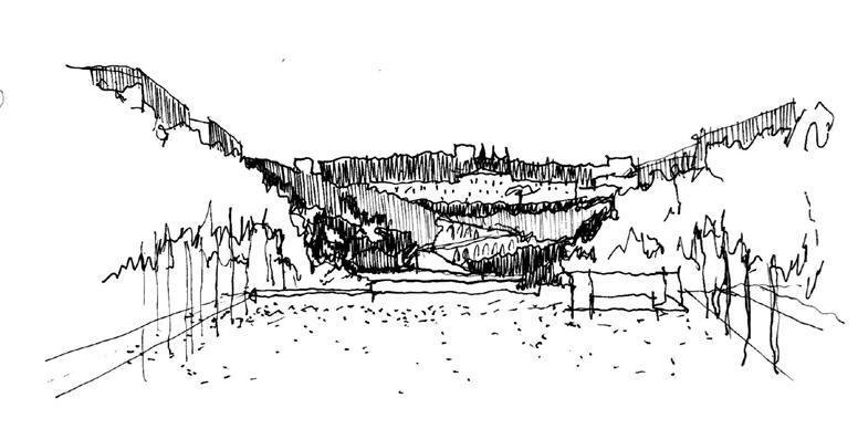 A través de la ilustración digital busco simplificar las formas observa das, llevando el paisaje a líneas y colores simples. Del mismo modo con la obra de arquitectura se propone crear atmosferas que contengan la forma y condiciones del espacio en función del acto.