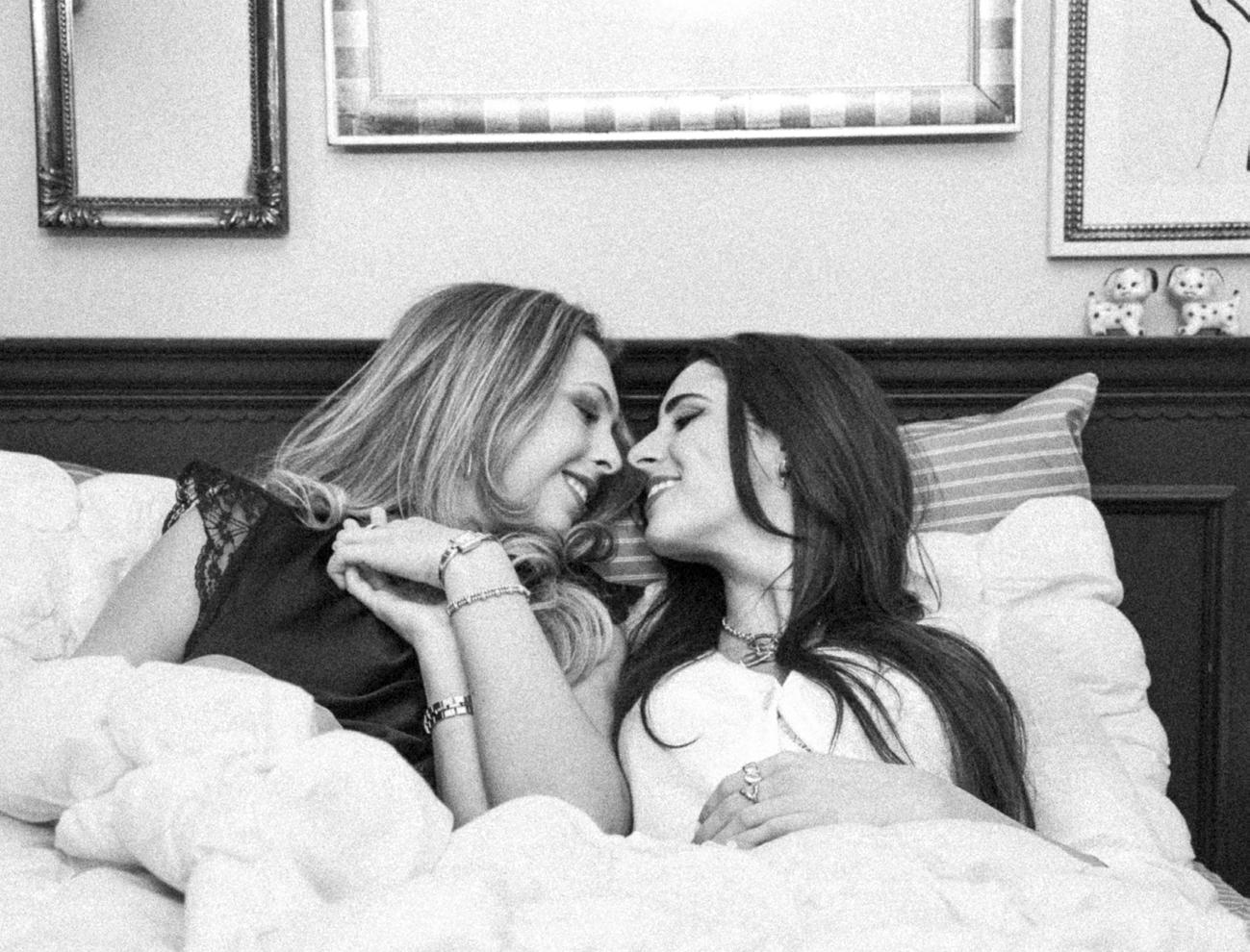 We compliment each other’s outfits and allude to ‘girls-in-bathroom-at-a-party-talk’, laugh, then get right into it.