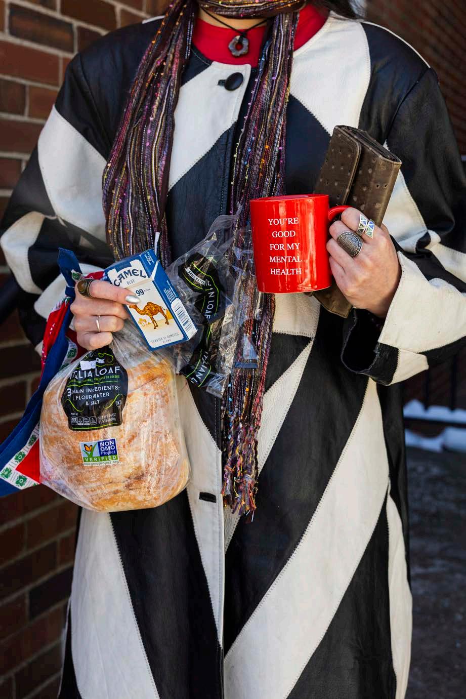 Tucked neatly into a niche corner of the internet, Instagram’s @girlscarryingshit is the spawn of a 2021 lunch break run. A burnt out Robbe walked herself—phone, keys, wallet in hand—to a nearby bodega where she picked up two Redbulls (for the sake of a ‘two-forsomething’ sale, of course.) A friend found it humorous and snapped a photo of Robbe’s busy grasp.