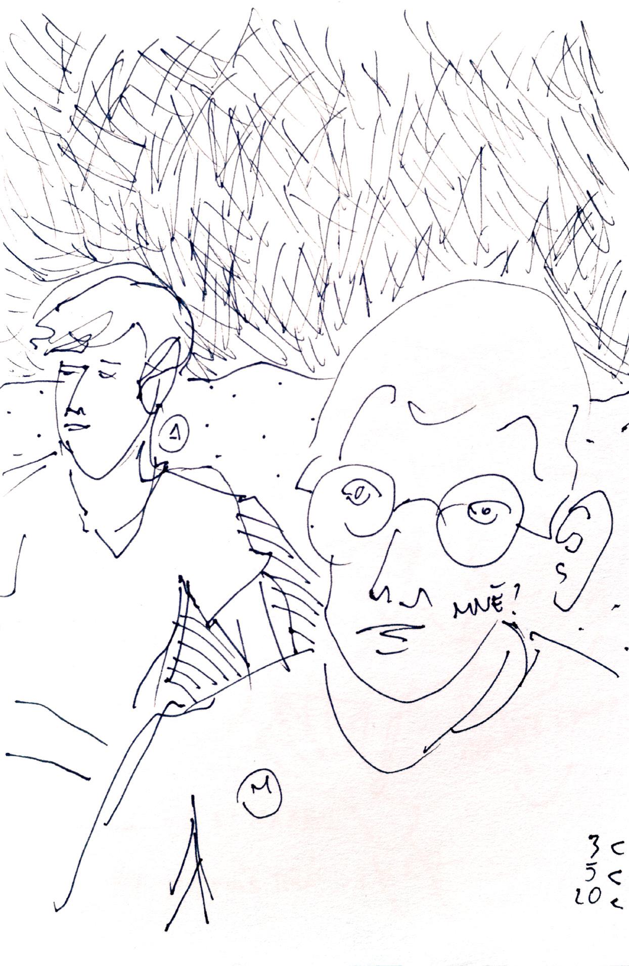 My drawing is on the other hand centered around people. Their movement, behaviour – things a camera can not capture – speed of movement, relationships, act in time.