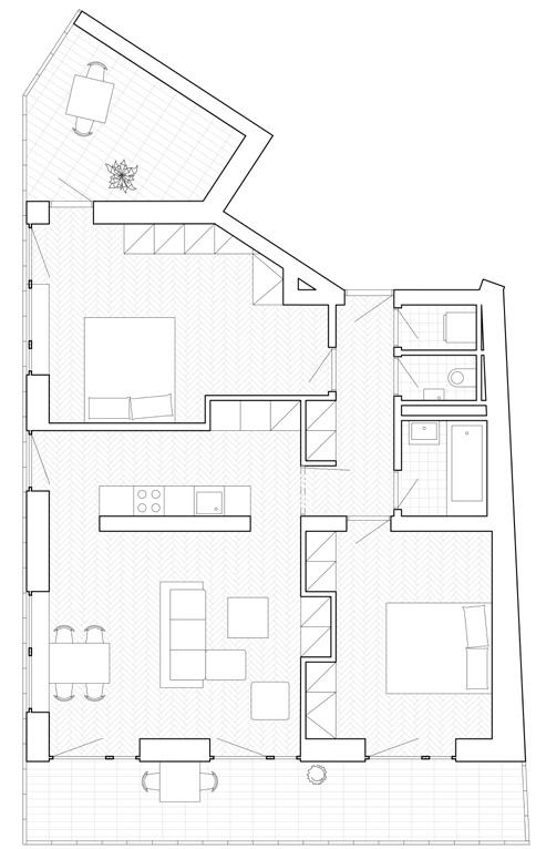 Tento semestr jsem pracovala na zadání v Londýně ve čtvrti Tower Hamlets. Plocha zadání se rozprostírá přímo nad světoznámým obchodním centrem Canary Wharf. V semestru byla naše práce rozdělena do dvou částí - individuální analýzy obytných typologií a následně skupinové práce a vytvoření masterplanu oblasti. Zadání naší práce bylo navrhnout kvalitní bylední jako husté ale nízké město. Hlavním limitem zadání byl výškový limit pro všechny stavby do 30 metrů / 10 podlaží. Naším úkolem bylo experimentovat s vybranými typologiemi a kompozicemi tak, abychom dosáhli co nejvyšší hustoty. Náš konečný návrh dosahuje průměru 174 bytů/hektar, neboli 579 obytných místností /ha. To z našeho pohledu není dostačující hustota pro tak centrálně položenou část Londýna. Mnohem více by zde byla patřičná vyšší hustota kolem 300 bytů/ha, které by ani s maximálním využitím ploch v daném výškovém limitu nešlo dosáhnout. Proto jsme shledali že není vhodné pro tuto oblast omezovat výstavbu touto výškou. Co se týče samotné oblasti návrhu, jejím hlavním elementem je rozdělující nepřekonatelná bariéra ve formě 6 pruhové rychlostní silnice Aspen Way a k ní přiléhající železnice, která oblast dělí na sever a jih. Ovšem fyzické dělení oblasti je jen z jedním přítomných problémů, velmi patrné je i sociální rozdělení: jih je charakterizován Canary Wharf - vysokou zástavbou především kancelářských budov užívanou převážně zámožnějšími singles. Sever je oproti tomu nízký, obývaný hlavně rodinami minorit a jiných sociálně slabých skupin. Naším úkolem nebylo tedy jen zacelit fyzické předěly, ale i ty sociální. Fyzickou bariéru silnice a železnice zacelujeme centrálním mostem uličního typu, s budovami po obou stranách, tunelem a přeměnou existujícího mostního spojení. Náš návrh je otevřen k myšlence možné budoucí transformace silnice, kdy se omezením automobilové dopravy může proměnit na příjemný bulvár s parterem. Výškové rozdíly v terénu řešíme rampami, abychom umožnili volný prostup novou městskou částí pro všechny.