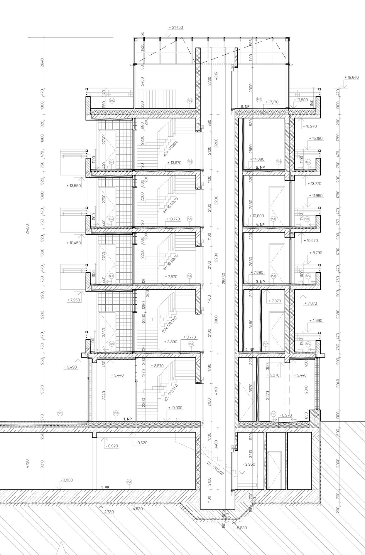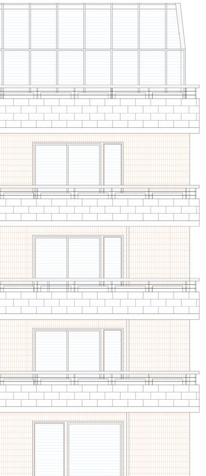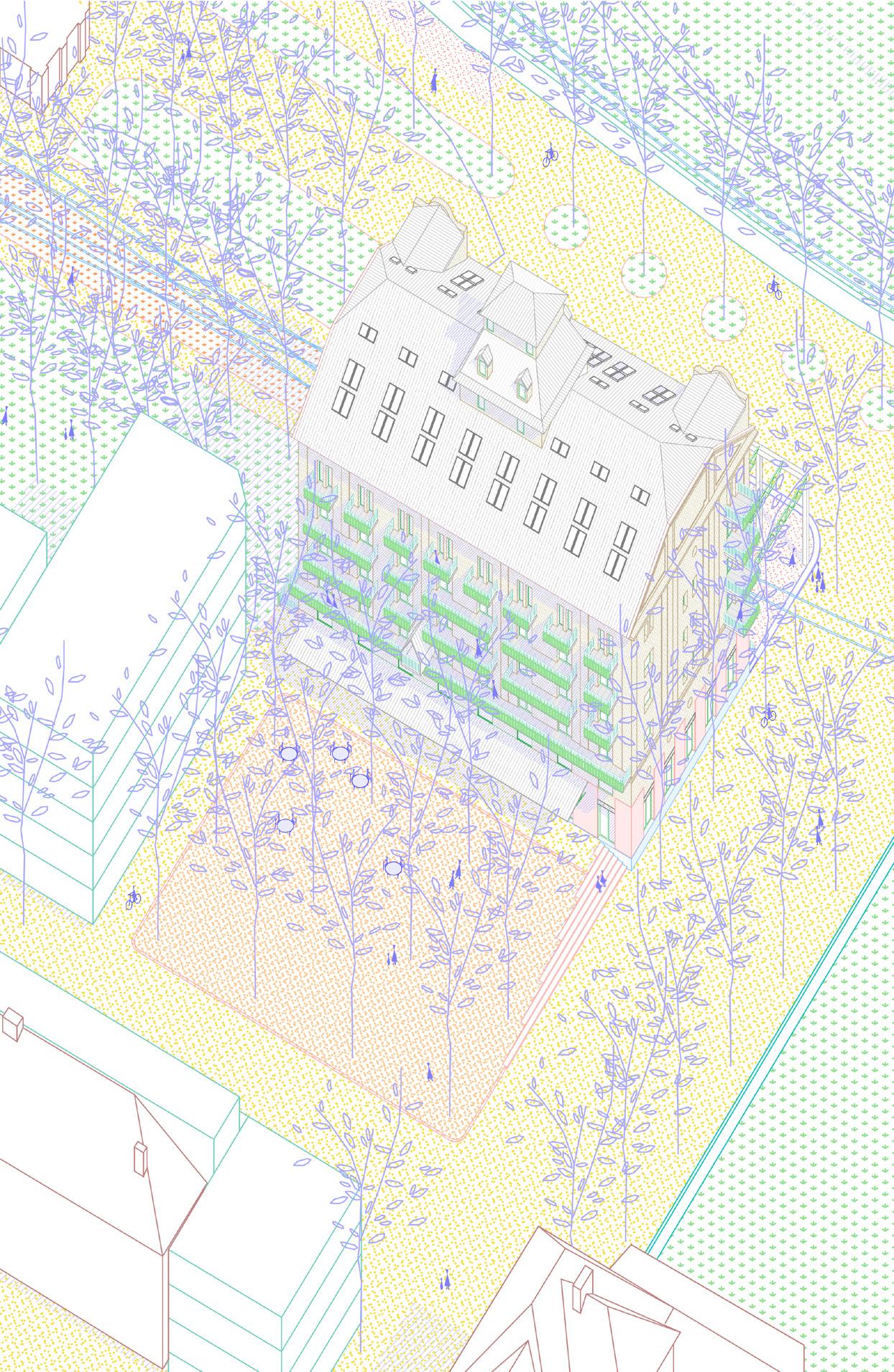 The studio assignment starts by creating a cooperative. We chose an agricultural cooperative which associates small local farmers in the city. The building is located in Prague, Libeň, between streets Na Hrázi and Světova. Due to the current situation, I divided the house into two and created a street between them which connects the streets Na Hrázi and currently dead end street Světova. On the ground floor there is a space for a farmers market. On the first floor there are two offices for the cooperative. The main purpose of the cooperative is education and connecting small farmers which individually cannot compete with large farms. The houses have rooftop greenhouses and gardens meant for producing fruit and vegetables. The rest is filled with apartments both variable and classic. The main idea of the house is truthfulness. We find ourselves in the times, when we cannot build houses the same way as we did 50 years ago. Most of the houses are built with thermal insulation covering the true core of the house, the necessary raw material which is the real building. Then we cover it all in plaster or some cladding. Those buildings are untrue because they pretend to be made of something they are not. In my work I ask a question: Is this the only way we have? And in my bachelor´s project I answer that question. My design of the houses has curtain walls made of a load bearing layer from ceramic blocks and a layer of thermal insulating ceramic blocks connected through a 40 mm thick layer of polystyrene. I found 4 ways of achieving facade made of raw ceramic blocks. Three of them are: engobe, glaze and a protective sealer for ceramics. But the fourth way is the most interesting one - we could expose ceramics blocks to much higher temperatures as we do with ceramic tiles and make them impervious. Unfortunately, currently there is no production line able to do this because there is no demand.