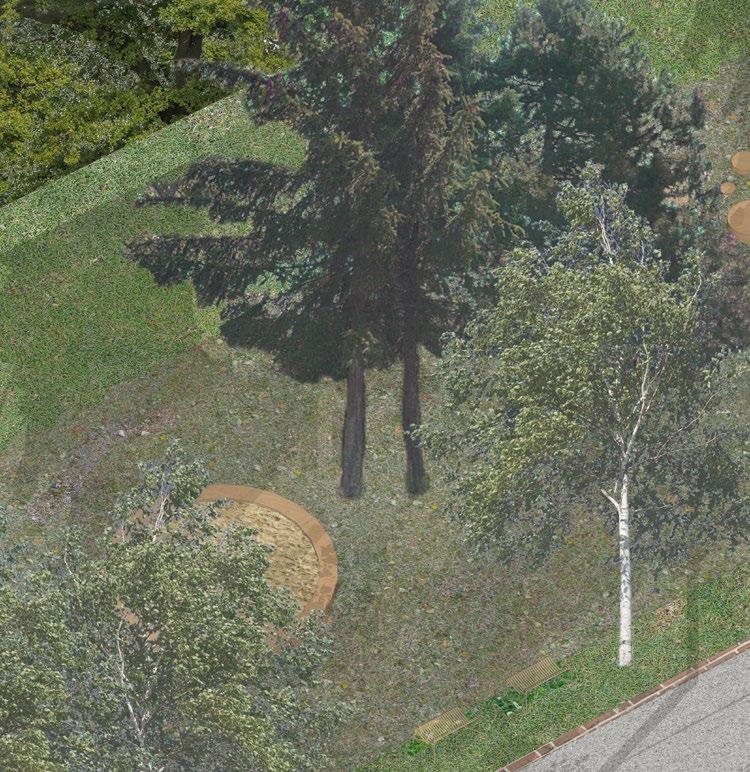 In the spring semester of 2023 I desiced to apply for a landscape architecture studio and learn a bit about their view on public spaces. Since I am not a landscape architect I chose a small scale task and designed a square on Libčice nad Vltavou. Libčice is a beautiful small town just 15 min north of Prague. The square itself is currently a space between places - nor a square, nor a street, nor a park. The whole Svoboda square is much more than is currently being used, not just a central part which is currently used as a square with a municipal hall and a new proposition for reconstruction, but also almost 0,5 km long green belt elevating up the hill into the landscape. That part is not perceived or used as a square although it has an enormous value. In my design I try to give it a character of different places with their own meaning and use, and melt currently divided space into one whole public space gradating from the busy central square into silent free landscape. Because of planned new development in its upper part my design comes in two phases – in the second one an orchard is added to work as a meeting space for new individual development and also as a mediation between it and open landscape.