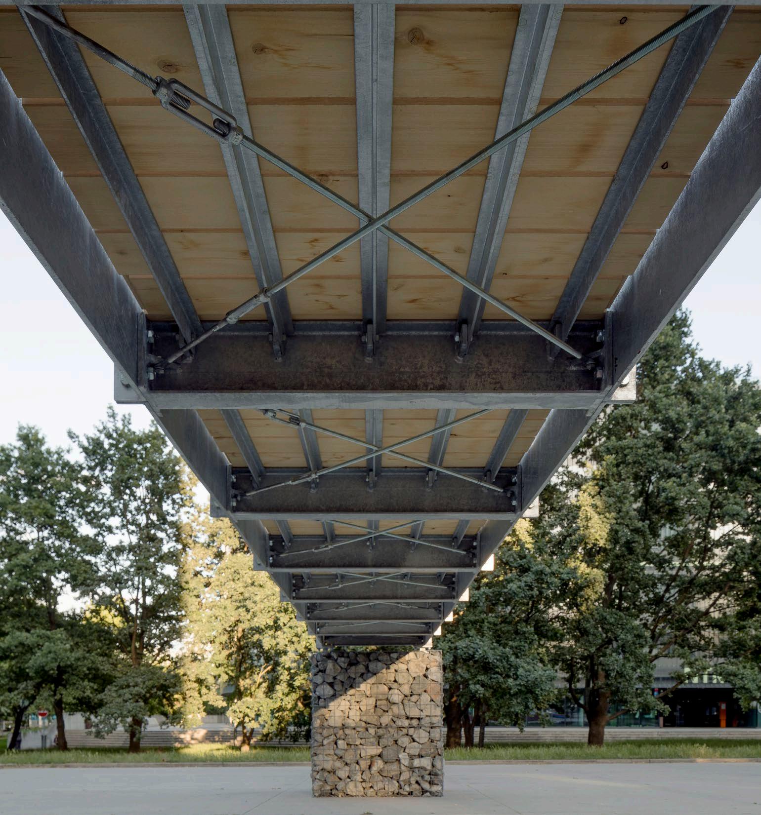 V rámci letního semestru 2023 jsme se spolu s dalšími 4ateliéry zúčastnili projektů design and build. Každý z nich zpracoval návrh lávky do Krkonošských hor, který studenti dostali za úkol sami navrhnout, vypracovat a následně i postavit. Jednalo se už o druhý takový čin, první studentské lávky si nechala správa KRNAPu zhotovit už v roce 2019 a spolu s útulnami, které vznikly v dalších letech, tvoří atraktivní magnet pro turisty, kteří už do hor nejezdí pouze obdivovat přírodu, ale i mladou architekturu. V rámci ateliéru vzniklo 9 návrhů od jednotlivých studentů z nichž byl k realizaci vybrán jeden. Návrh mé lávky vychází z několika úvah. Jako první je problematika nedostupnosti místa. Ke Klínovému potoku vede pouze úzká pěšina, která znemožňuje použití jeřábu či nákladové techniky. Lávka musí být rozložitelná na díly, které lze přenést ručně, a musí umožňovat opakované sestavení a rozložení. Druhou úvahou je výběr materiálu. Nacházíme se na místě, kde přírodní podmínky výrazně limitují užití dřeva, ač je mu intuitivně nejbližší. Dřevěné konstrukce zde kvůli neustálému zatížení vodou a sněhem vytrvají nejdéle 7 let, neumožňují použití kratších rozložitelných elementů, které by bylo možno snadno přenést nebo opravit a koryto potoka, které má překlenout, činí 12 metrů. Betonové i kamenné prvky jsou příliš těžké, zato pozinkovaná ocelová konstrukce zde může existovat 50 i 100 let. Výsledkem snažení je tak kompromis. Kompromis mezi udržitelností ekologickou, ekonomickou, morální i sociální. Konstrukci lávky tvoří dvojice Vierendeelových nosníků, které využívají nutné výšky zábradlí pro vytvoření nosného prvku. Lávka je v něčem tvrdá a výrazná, ale zároveň i jemná a zranitelná. Je to lávka odhalená, jejíž nosné elementy můžeme vidět i cítit každý krok. Je to lávka lidská, vytvarovaná ze surových materiálů podle přesné dokumentace do nepřesného lidského finálního tvaru. V její pravdivosti a nedokonalosti se tak odráží nedokonalosti naše vlastní.