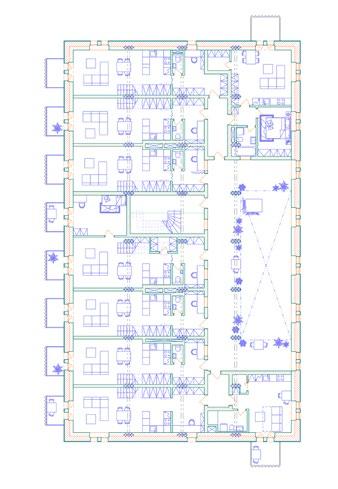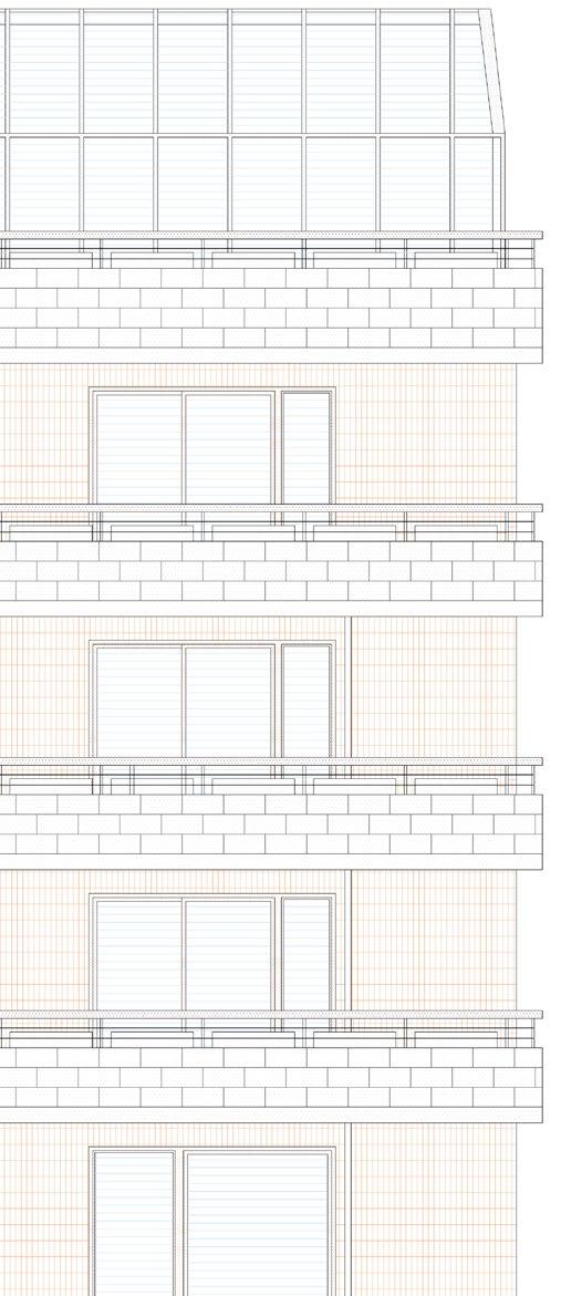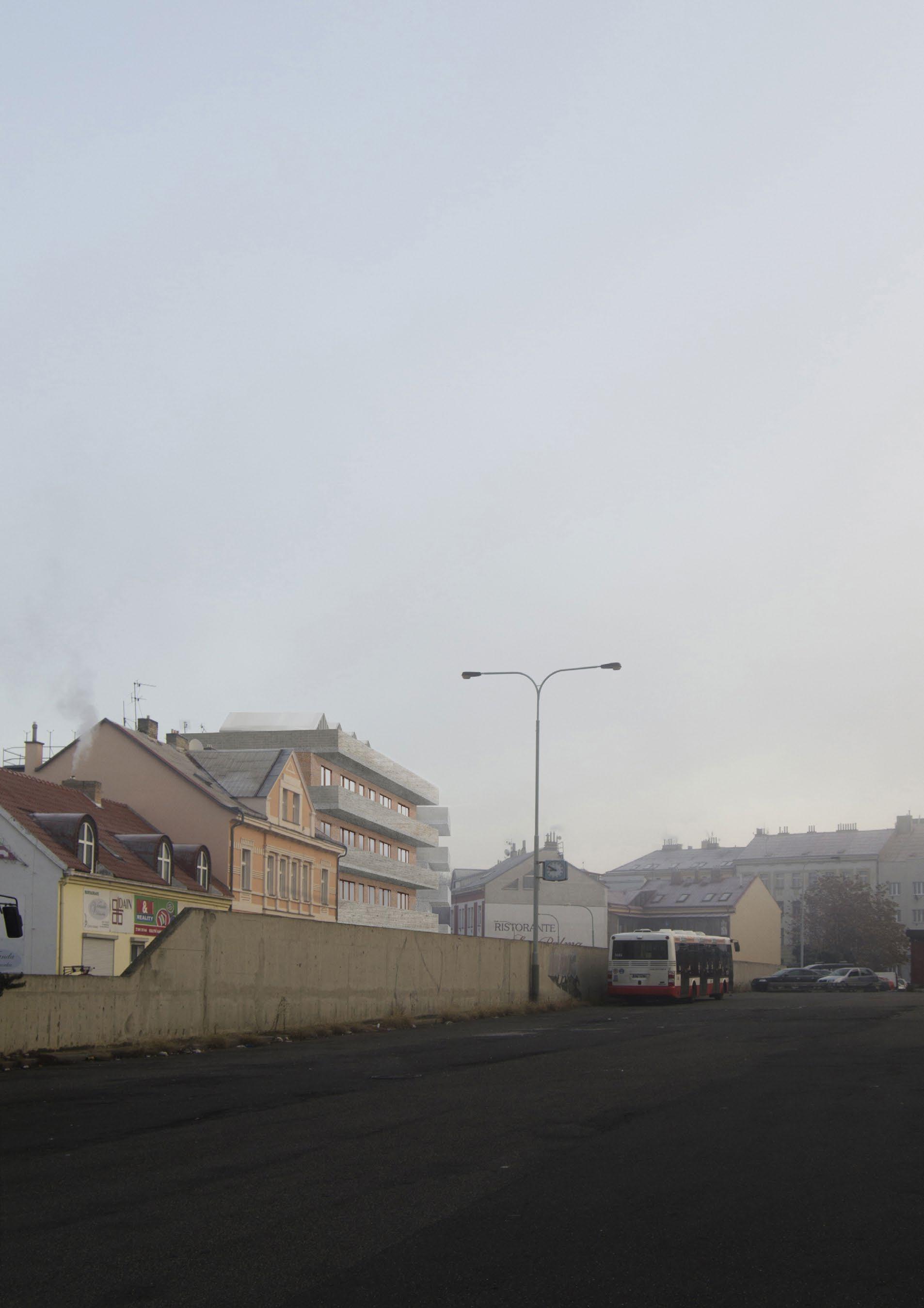 The studio assignment starts by creating a cooperative. We chose an agricultural cooperative which associates small local farmers in the city. The building is located in Prague, Libeň, between streets Na Hrázi and Světova. Due to the current situation, I divided the house into two and created a street between them which connects the streets Na Hrázi and currently dead end street Světova. On the ground floor there is a space for a farmers market. On the first floor there are two offices for the cooperative. The main purpose of the cooperative is education and connecting small farmers which individually cannot compete with large farms. The houses have rooftop greenhouses and gardens meant for producing fruit and vegetables. The rest is filled with apartments both variable and classic. The main idea of the house is truthfulness. We find ourselves in the times, when we cannot build houses the same way as we did 50 years ago. Most of the houses are built with thermal insulation covering the true core of the house, the necessary raw material which is the real building. Then we cover it all in plaster or some cladding. Those buildings are untrue because they pretend to be made of something they are not. In my work I ask a question: Is this the only way we have? And in my bachelor´s project I answer that question. My design of the houses has curtain walls made of a load bearing layer from ceramic blocks and a layer of thermal insulating ceramic blocks connected through a 40 mm thick layer of polystyrene. I found 4 ways of achieving facade made of raw ceramic blocks. Three of them are: engobe, glaze and a protective sealer for ceramics. But the fourth way is the most interesting one - we could expose ceramics blocks to much higher temperatures as we do with ceramic tiles and make them impervious. Unfortunately, currently there is no production line able to do this because there is no demand.