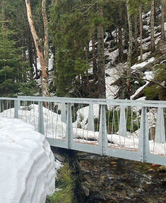 During the spring semester of 2023 several FA CTU studios participated in design and build projects. The topic for our work was to create footbridges for the Krkonoše National Park. KRNAP administration had already cooperated with FA CTU in the past and there are already several footbridges and forest shelters existing within the park made by students. It is becoming more and more known and tourists come to the park not just to see nature but also young architecture. During the semester each of participating students came with his own design for the footbridge and one of them was then manufactured. My design is a reaction to several problems of the site. First problem is that the future site is quite secluded within the forest and no crane or truck can reach it. The footbridge has to be therefore designed from prefabricated pieces that can be carried by hand and assembled and disassembled as needed. Second problem is materiality. The location in the deep mountain forest calls logically for the use of wood but from the experience of the administrators no construction was able to withstand the harsh conditions for more than 7 years, preceding footbridge lasted only 3 years. Wooden elements are mainly problematic in their junctions that are necessary since no larger elements can be transported here and the span of the footbridge measures 12 meters. Those findings led me to choose zinc steel which can fulfill all those demands. The result is a compromise in sustainability – ecological, economical, moral and social. The proposed footbridge utilizes height required for railings as a load bearing element – Vierendeel truss – assembled from 12 pieces. In some way it is tough and bold but also soft and fragile made just out of 12 mm thick steel plate. The footbridge was designed imperfect and true as we all are.