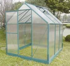 Polikarbonatni rastlinjak Moj vrt - SERIJA P alu okvir debelina 1-2,4 mm, plošče deb. 4 mm, pocinkano podnožje višina 10 cm, enojna drsna vrata, strešna odprtina za zračenje