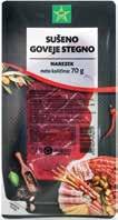 Vse cene v letaku so neto-neto, na katere ne obračunavamo pogodbenih bonitet, razen pri izdelkih z dodano vrednostjo - gratis, kjer je to posebej označeno! 6 4,5571 €/kg 4,99 € Cena z DDV Piščančja krila IK • začinjena • mesni pripravek • cena za 1 kg T.P.: karton = 1 kos Šifra art.: 438805 7,6621 €/kg 8,39 € Cena z DDV Mladi goveji bočnik s kostjo • postrežno T.P.: karton = 4 kosi Šifra art.: 791002 3,0046 €/kg 3,29 € Cena z DDV Pleskavice • Tuš • 480 g T.P.: karton = 1 kos Šifra art.: 751775 7,4795 €/kg 8,19 € Cena z DDV Orada • Sparus aurata 200/300 cc • cena za 1 kg Šifra art.: 814229 5,9269 €/kg 6,49 € Cena z DDV Puranji file • Tuš • cena za 1 kg T.P.: karton = 1 kos Šifra art.: 780896 5,1963 €/kg 5,69 € Cena z DDV Svinjski kare s kostjo • Tuš • cena za 1 kg T.P.: karton = 15 kosov Šifra art.: 819237 6,1096 €/kg 6,69 € Cena z DDV Nabodala iz svinjskega mesa • začinjeno • Tuš • mesni Pripravek T.P.: karton = 1 kos Šifra art.: 641028 3,4612 €/kos 3,79 € Cena z DDV Mleto mešano meso • Celjske mesnine • 500 g T.P.: karton = 1 kos Šifra art.: 818803 4,1370 €/kos 4,53 € Cena z DDV Leskovački čevapčiči • Celjske mesnine • 480 g T.P.: karton = 1 kos Šifra art.: 747687