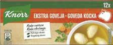 Vse cene v letaku so neto-neto, na katere ne obračunavamo pogodbenih bonitet, razen pri izdelkih z dodano vrednostjo - gratis, kjer je to posebej označeno! 13 1,3242 €/kos 1,45 € Cena z DDV Juha Saikebon • več vrst • 59-60 g T.P.: karton = 8 kosov Šifra art.: 759180, 759177, 759182, 779858 1,7717 €/kos 1,94 € Cena z DDV Kocka Knorr ekstra goveja • 120 g T.P.: karton = 24 kosov Šifra art.: 672960 2,5479 €/kos 2,79 € Cena z DDV Jušna osnova Knorr v prahu • zelenjavna,136 g • goveja, 130 g T.P.: karton = 10 kosov Šifra art.: 145500, 145499 0,5388 €/kos 0,59 € Cena z DDV Mešanica za živila • svinjska rebrca • pečen piščanec • Kotányi • 40 g T.P.: karton = 25 kosov Šifra art.: 319945, 319938 0,6301 €/kos 0,69 € Cena z DDV Začimbi Kotányi • česen zrnasti, 28 g • čebula zrnasta, 22 g • Kotányi T.P.: karton = 25 kosov Šifra art.: 319965, 319964 1,1781 €/kos 1,29 € Cena z DDV Mešanica Knorr • za golaž, 48 g • za polnjene paprike in sarme, 43 g • za mleto meso, 70 g T.P.: karton = 18, 21, 22 kosov Šifra art.: 815374, 146639, 146640 0,9863 €/kos 1,08 € Cena z DDV Juha Knorr • z zdrobovimi cmočki, 36 g • ABC, 82 g • alpska, 58 g T.P.: karton = 14, 16, 17 kosov Šifra art.: 128301, 131867, 130399 1,1507 €/kos 1,26 € Cena z DDV Juha Knorr • porova, 77 g • paradižnikova, 74 g • gobova z jurčki, 67 g T.P.: karton = 21, 26 kosov Šifra art.: 673512, 714876, 716220