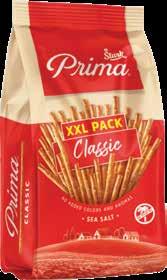 Vse cene v letaku so neto-neto, na katere ne obračunavamo pogodbenih bonitet, razen pri izdelkih z dodano vrednostjo - gratis, kjer je to posebej označeno! 2 0,6849 €/kos 0,75 € Cena z DDV Palčke Prima • z arašidovim polnilom • 100 g T.P.: karton = 30 kosov Šifra art.: 732783 0,9041 €/kos 0,99 € Cena z DDV Prigrizek Smoki Mix • flips in tortilija • flips in pokovka • 90 g T.P.: karton = 12 kosov Šifra art.: 135829, 143288 POPOLNA