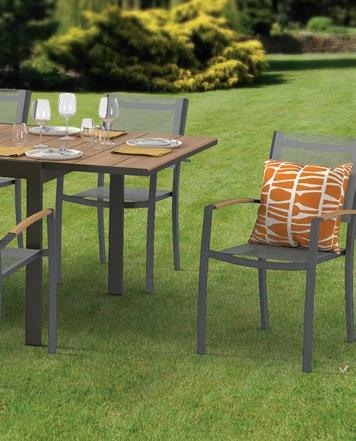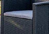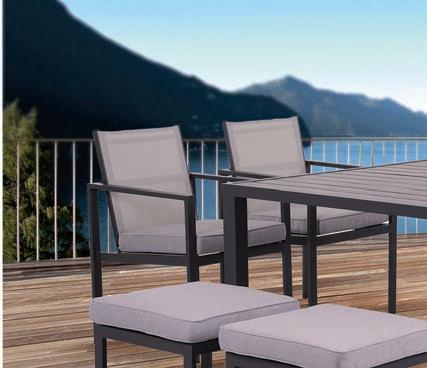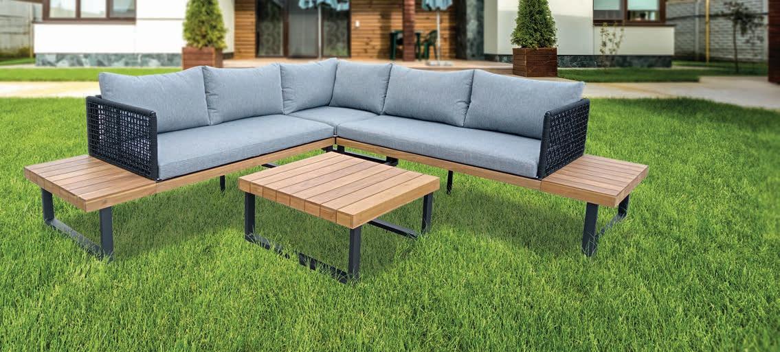 trosed: jeklo, aluminij, les, velikost (v x š x g): ca. 63 x 227 x 69 cm • blazine: poliester VRTNE GARNITURE 2