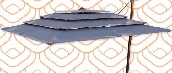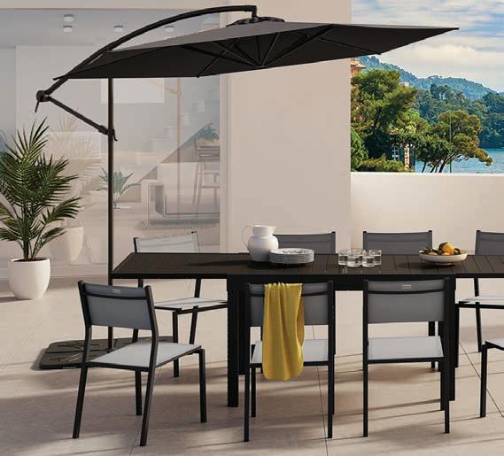 PODSTAVEK ZA SENČNIK • beton, polietilen • velikost (v x š x g): 5,2 x 49 x 49 cm 19€ 99 EKSCENTRIČNI SENČNIK • aluminijast, poliester 180 g/m2 • velikost (Ø x v): ca. 295 x 245 cm • brez podstavka 79€ 99 STOJALO ZA SENČNIK • velikost: 28 x 43 x 43 cm • polietilen 4€ 99 SENČNIK