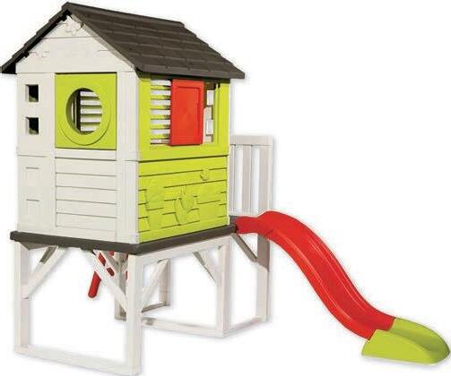 • podest višine 70 cm, protizdrsna lestev, okenske odprtine s pomičnim senčilom, terasa, polovična vrata in tobogan dolžine 150 cm