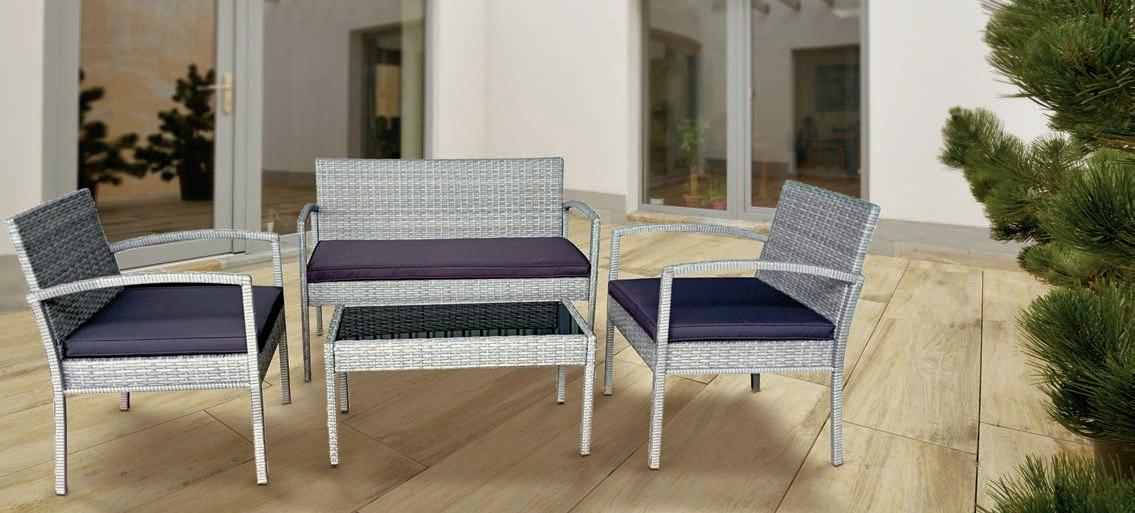 www.e-leclerc.si 149€ 99 ZNIŽANA CENA 249€ 99 100€ PREJŠNJA CENA 4-DELNI VRTNA GARNITURA • miza: jeklo, kaljeno steklo, velikost (v x š v g): ca. 44,5 x 91,5 x 45 cm • dvosed: jeklo, velikost (v x š x g): ca. 83,5 x 118 x 71 cm • 2x fotelj: jeklo, velikost (v x š x g): ca. 83,5 x 71 x 63,5 cm 199€ 99 ZNIŽANA CENA 299€ 99 100€ PREJŠNJA CENA 4-DELNI VRTNA GARNITURA • miza: jeklo, kaljeno steklo, velikost (v x š v g): ca. 37 x 74 x 40 cm • dvosed: jeklo, velikost (v x š x g): ca. 72 x 103 x 59 cm • 2x fotelj: jeklo, velikost (v x š x g): ca. 72 x 56 x 59 cm 99€ 99 ZNIŽANA CENA 129€ 99 30€ PREJŠNJA CENA 5-DELNA VRTNA GARNITURA • miza: jeklo, kaljeno steklo, velikost (Ø x v): ca. 80 x 70,5 cm 4x stol: jeklo, velikost (v x š x g): ca. 73 x 54 x 59 cm VRTNE GARNITURE 5
